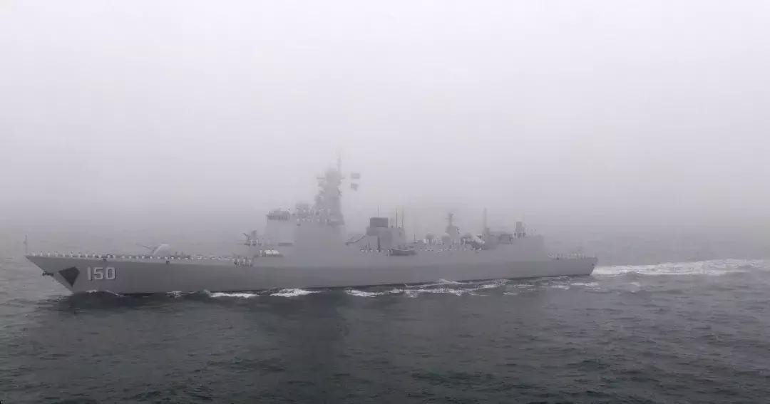 这是“太原”号导弹驱逐舰接受检阅。