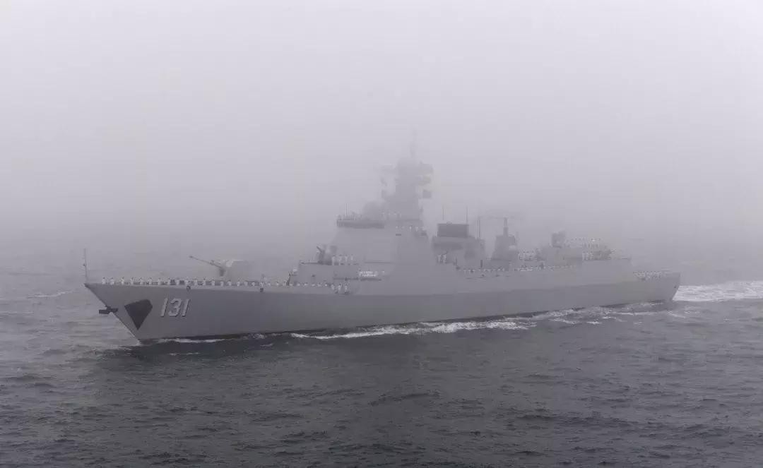 这是“长春”号导弹驱逐舰接受检阅。