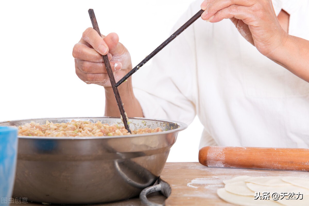 5、把面团平分成小剂子,然后擀成面皮后包入调好的馅料。