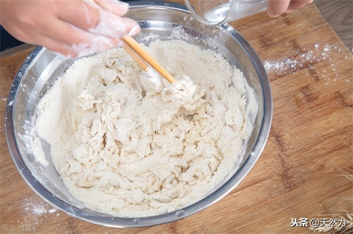 2、老面加糖,按5:1的比例调好后反复揉面,加入无铝泡打粉、溴粉和面粉揉匀后后盖上湿布醒置5分钟左右再揉成面团。