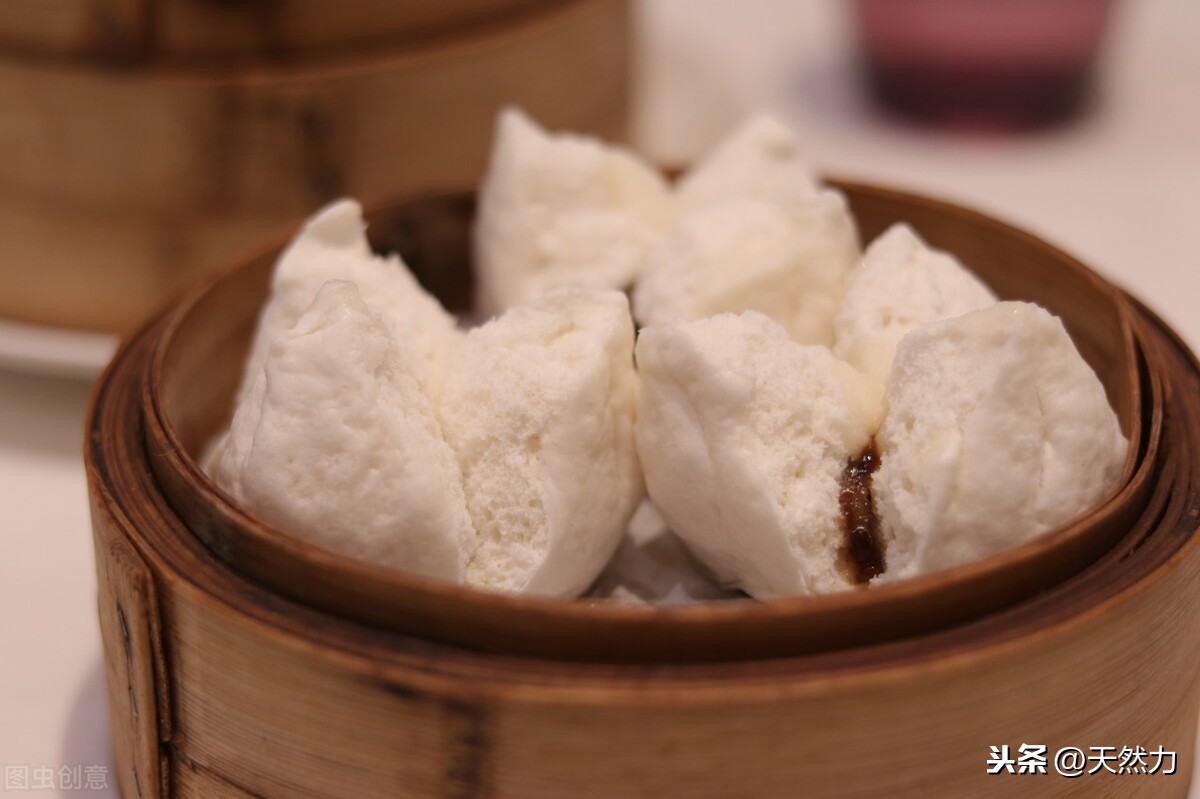 叉烧包是广东最具代表性的传统小吃,是粤式早茶必吃的茶点之一,出笼的叉烧包顶部自然开裂,有点像开花馒头,包子皮很松软,开裂的地方会稍微露出馅料,并散发出很诱人的叉烧香味。