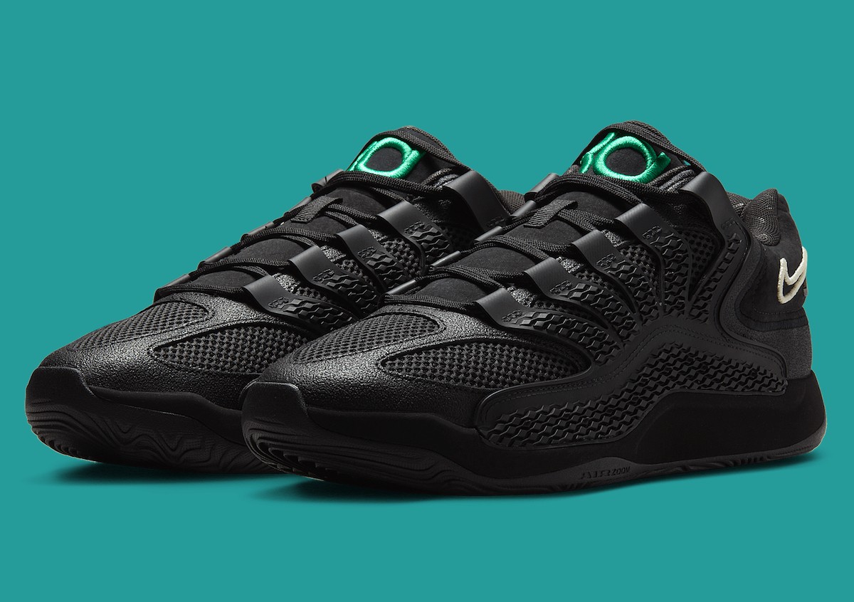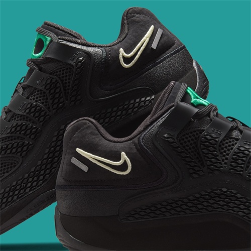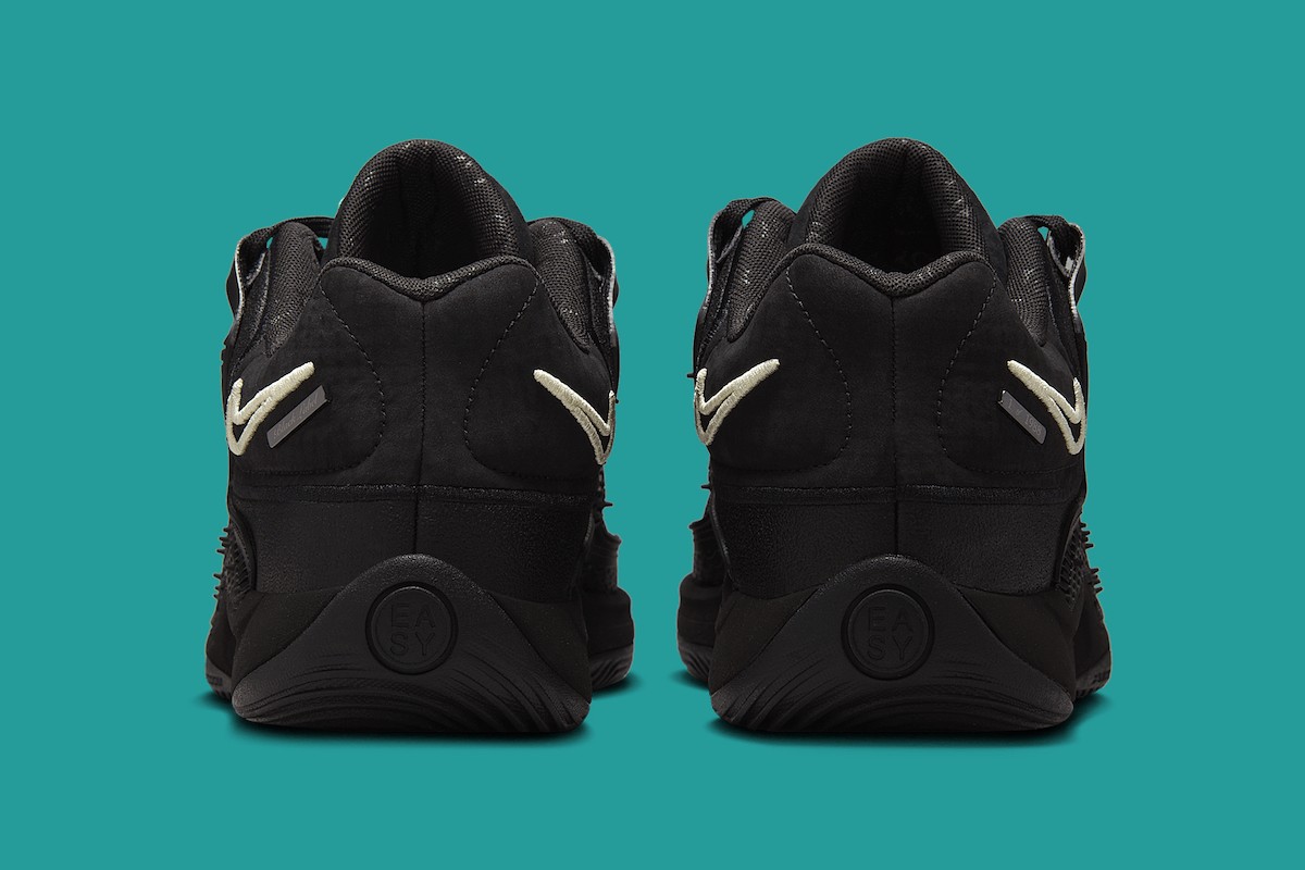 这款限量版鞋款共限量发行1,988 双,每双都有编号,以纪念杜兰特的出生年份。其设计灵感源自复古的 Nike ACG 户外鞋,将粗犷的美感与现代性能特征相结合。鞋跟上的对比色椰奶色 Swooshes 和鲜艳的鞋舌品牌标志与光滑的黑色鞋面形成鲜明对比,增添了视觉吸引力。