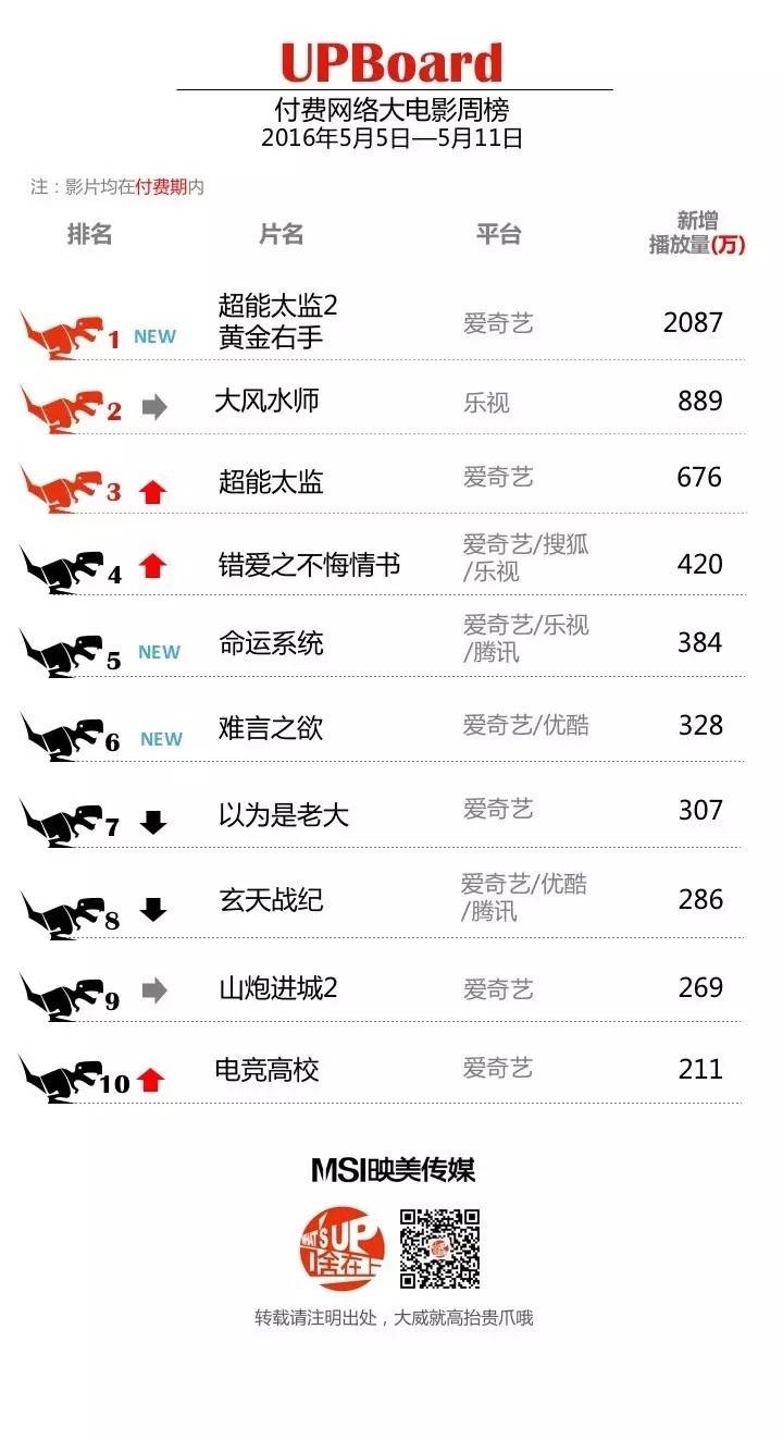 UP榜-《超能太监2黄金右手》排第一,拉开网大层级