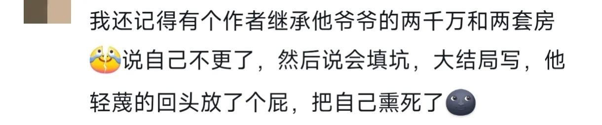有的是要回家继承遗产,有的是失恋没心情,还有的是中彩票不想再辛苦写小说了。