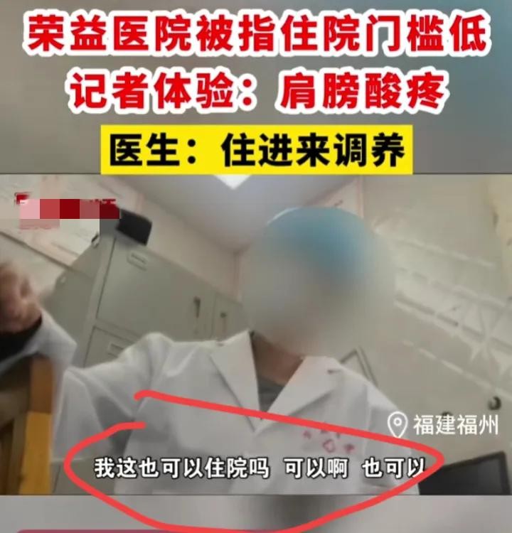 根据视频显示医院名为“荣益医院”,位于福建福州,名不虚传果然“荣益”,住院容易、看病容易、花钱容易,这种钻空子骗医保费的行为,不知道该作何处罚?