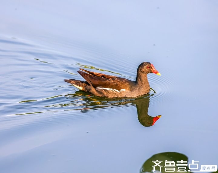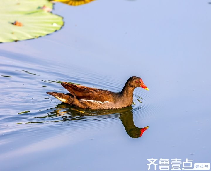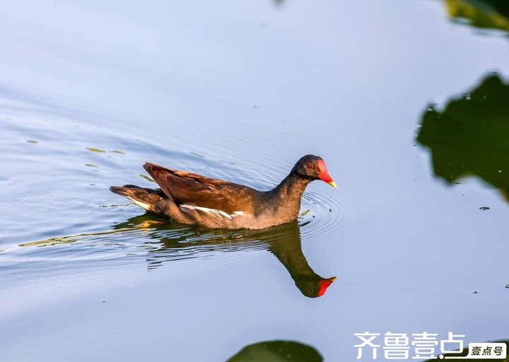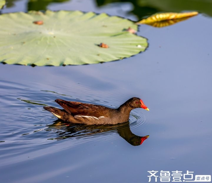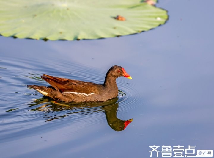 黑水鸡是水边的常客,其适应能力超群,无论在广袤的湖区,还是小区的人工池塘中,都能见到它们的身影。强大的生存能力,也使得它们种群昌盛,分布广泛。在中国的大部分地区,皆有黑水鸡繁殖。黑水鸡喜欢藏匿于芦苇之中及各种挺水植物间,当你走在公园的湿地旁,常常是不见其影先闻其声,芦苇间的宁静,经常会被黑水鸡高亢嘹亮的鸣叫声划破。黑水鸡极其适应水边的生活,它们不仅可以在荷叶和水草间自由穿行,还能轻松地游弋于碧波湖面。这都要归功于它们巨大的脚掌,不仅能够帮助它们快速地划水,还能让其在水草上行走时分散身体的重量。