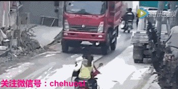 车祸GIF:电动车男被卡车碾爆头部,画面残忍!