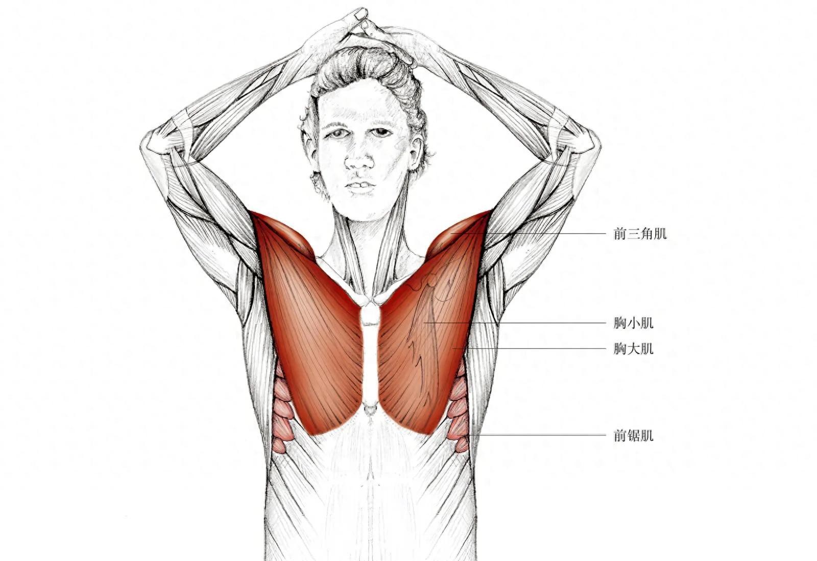 步骤:身体站直,双手十指交扣。弯曲手肘并把交扣的双手举到头顶,同时把双手和双肘往后推。