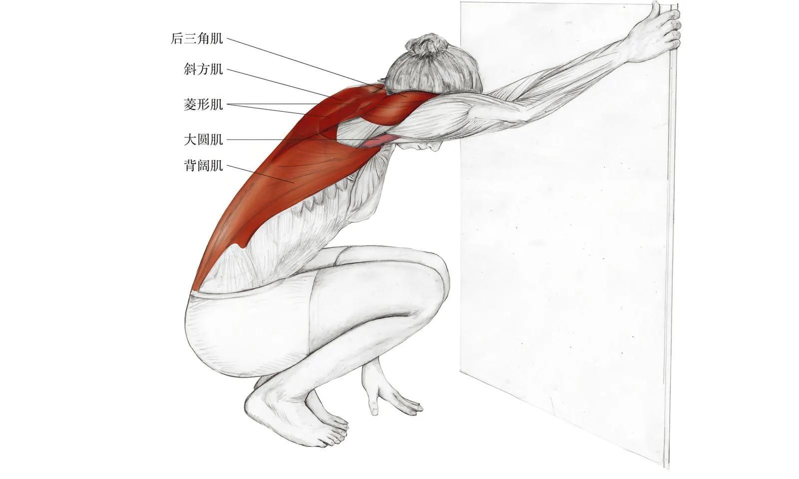 保持蹲姿,面向门边或柱子,单手握住门边或柱子,然后将背部往后靠。