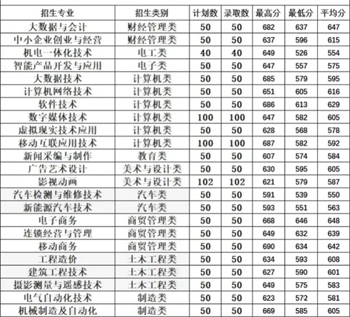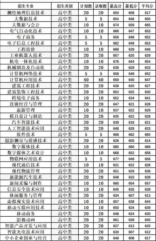 福建信息职业技术学院2024年高职分类考试招生面向高中生和中职生两种,各类各专业录取分数如下: