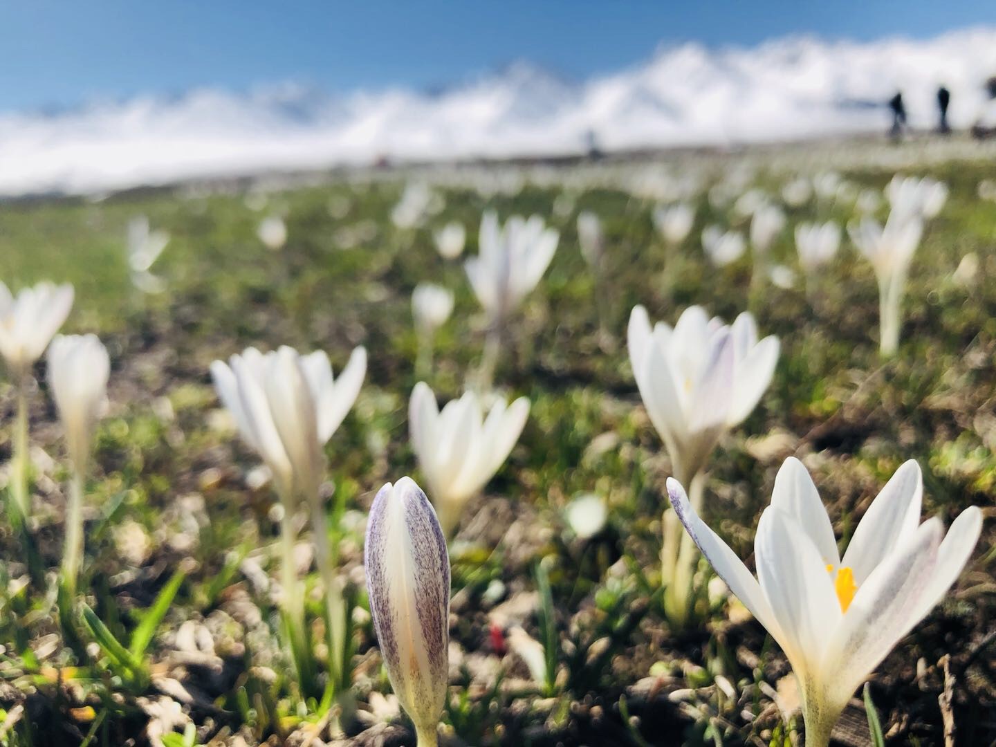 四月,来到那拉提景区,你就可以在空中草原上,在恰普河的沿岸看见番红花。只是,当地人更喜欢称呼它为“顶冰花”。因为当积雪尚未消融时,它们就在寒气包裹的土壤中酝酿起一场生命的绽放。当积雪在春天的催促下,慢慢退去时,它就会迫不及待地从浅浅的冰层中,一点点地探出柔嫩的细叶,一片片地展开浅色的花瓣。它是草原上最早绽放的花,一夜之间,可以开满一面山坡。