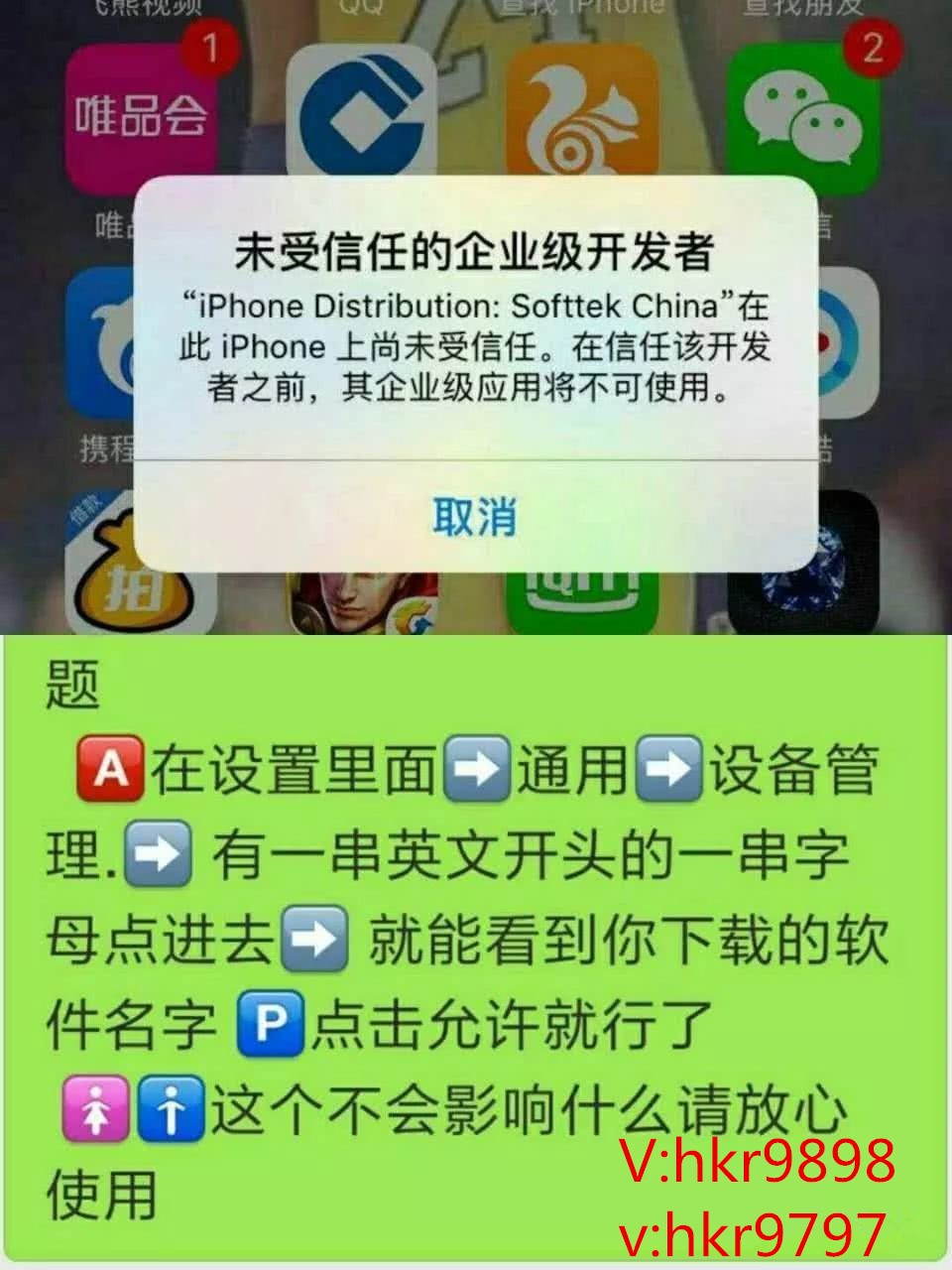 苹果手机下载后,请打开手机设置->通用->设备管理(或描述文件与设备管理),从企业级应用列表中找到Green,然后点击信任