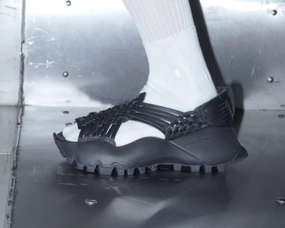 该鞋由墨西哥裔美国设计师Willy Chavarría与阿迪达斯联合推出,结合了黑色运动鞋底与传统皮革编织鞋面纹样,灵感源自墨西哥瓦哈卡州伊达尔戈·亚拉拉格庄园的传统huarache凉鞋。Willy Chavarría公开表达了歉意,他承认在设计和推广过程中未对原设计师及工匠给予充分致谢或合作,也未能与当地社区进行充分沟通,对此深表歉意。