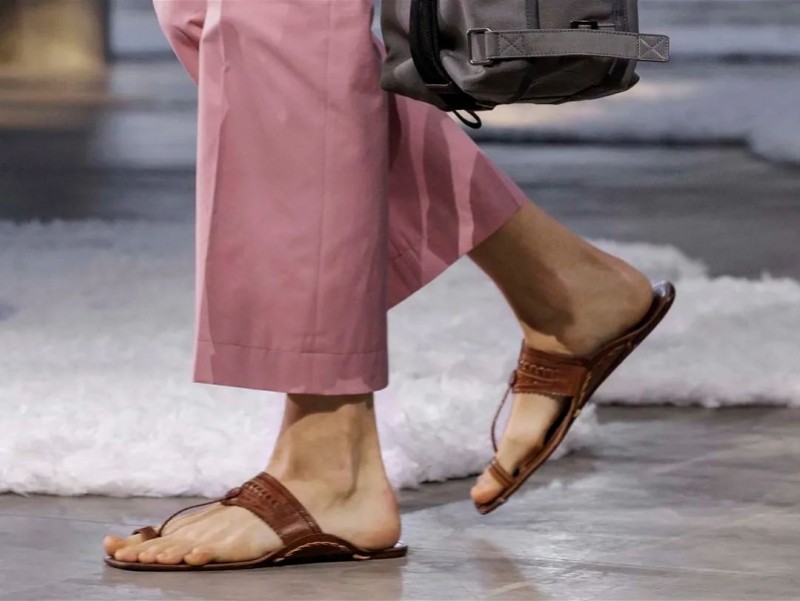 据悉,Kolhapuri拖鞋是一种有着800多年历史的传统手工鞋履,以复杂的皮革编织工艺闻名,长久以来由印度当地工匠世代手工制作,是印度民族服饰和文化认同的重要象征。Prada在未明确致敬或提及其文化来源的情况下,将相似设计搬上时装舞台,迅速在印度国内引起强烈反响。