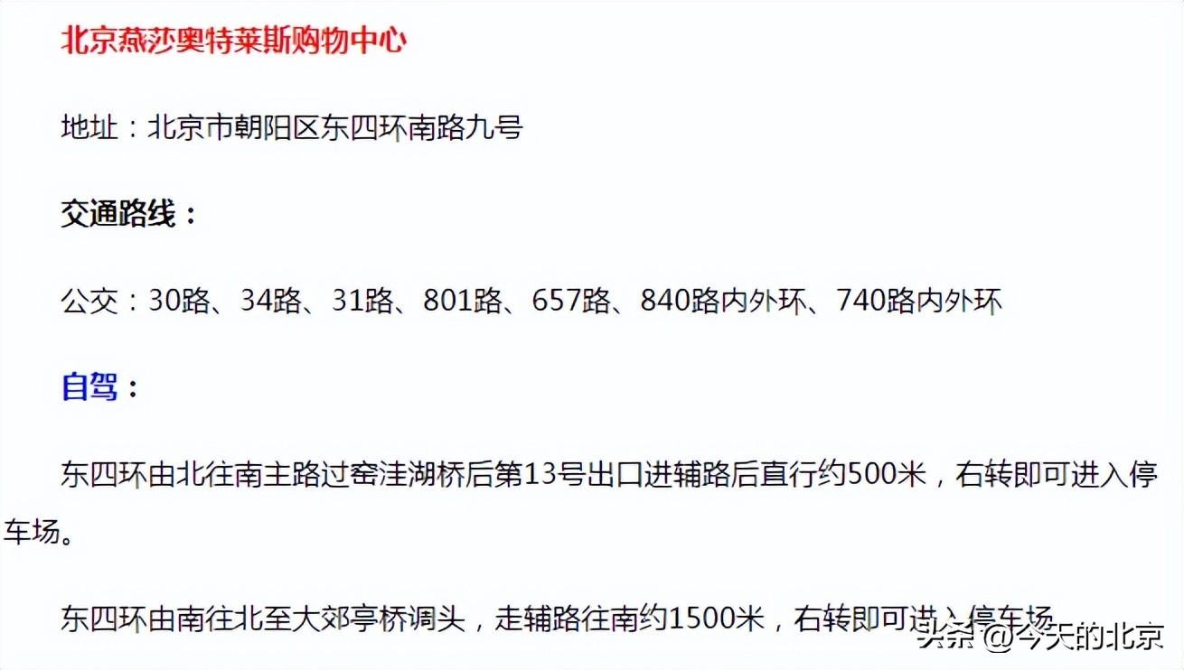 燕莎奥莱位置和乘车路线指引: