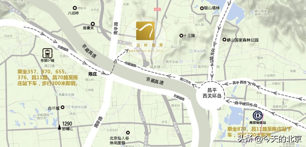 八达岭奥莱位置和乘车路线指引: