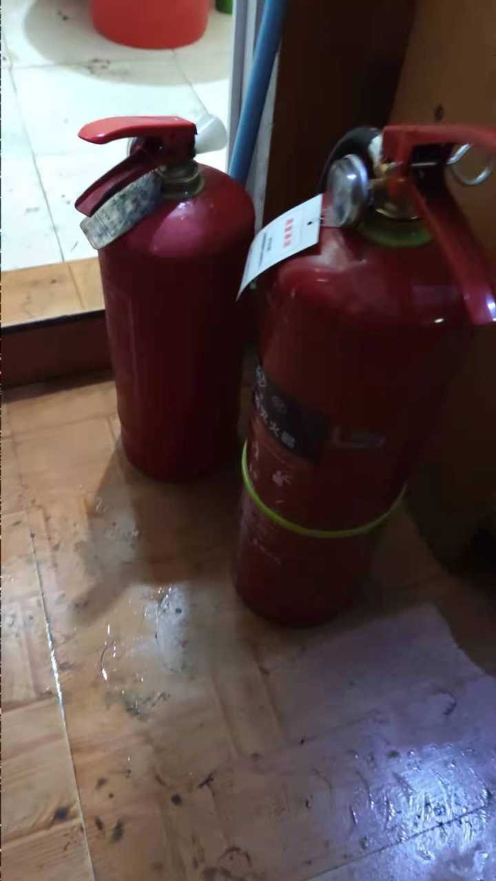 房间门口放着两个灭火器,小一点的那个是戚龙剑昨天用了的灭火器,“新的是早上物业送过来的,我们小区因为租户多,物业给每户都配了灭火器。”