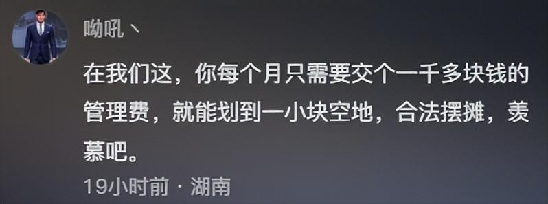 在我们这,你每个月只需要交个一千多块钱的管理费,就能划到一小块空地,合法摆摊,羡慕吧。