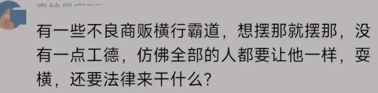 有一些不良商贩横行霸道,想摆那就摆那,没有一点公德,仿佛全部的人都要让他一样,要横,还要法律来干什么?