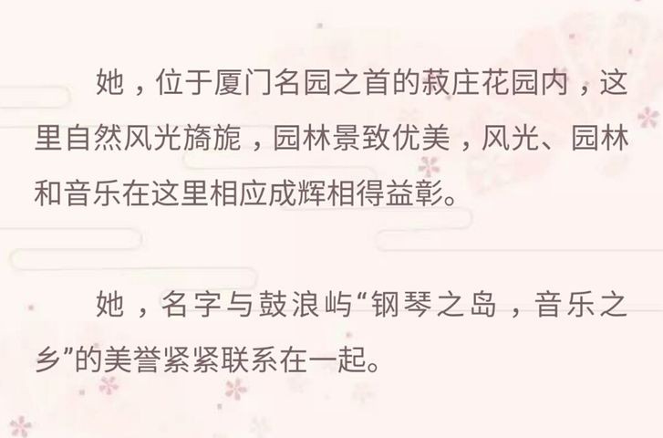 【小编留言】历时9年,鼓浪屿终于申遗成功了!这座仅有1.88平方公里的小岛,成功列入《世界遗产名录》。鼓浪屿素有“钢琴之岛,音乐之乡”的美誉,而钢琴博物馆正是这音乐皇冠上最美丽的一颗珍珠。在馆内有一群美丽的身影,她们是音乐文化的推介者,她们是锐意进取的有心人,她们是钢琴的守护者, 她们是文明建设的践行者, 她们是充满爱心的奉献者,她们,荣获了“巾帼建功”活动中的最高荣誉——“全国巾帼文明岗”!