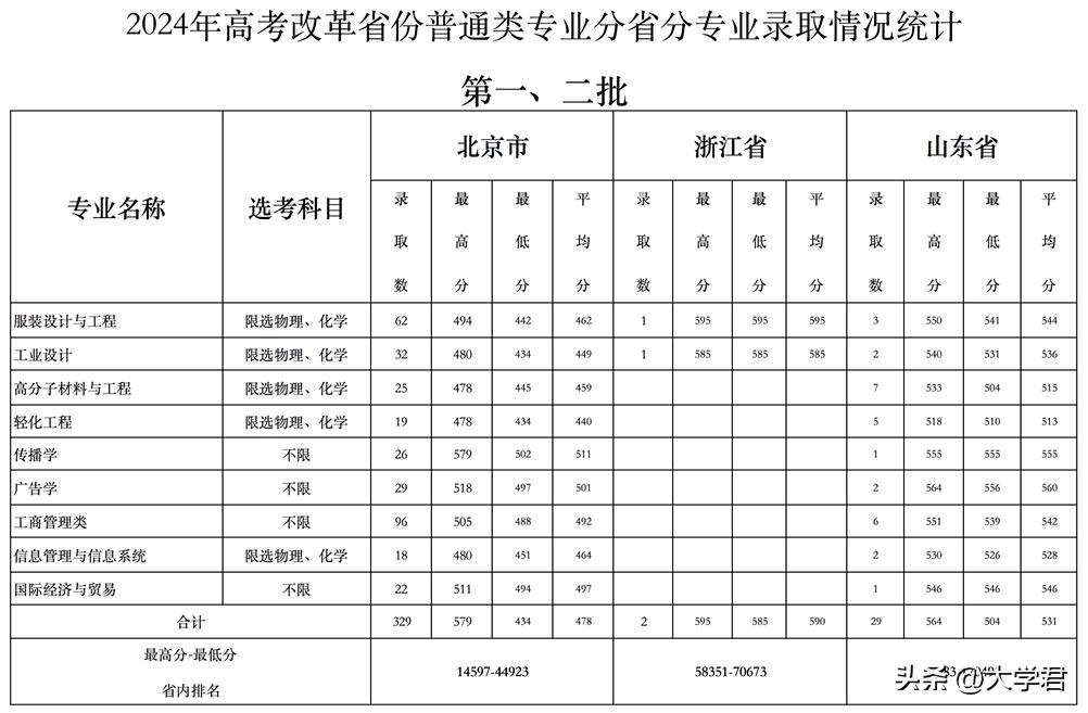 2024年,第一、二批:北京、浙江、山东三省录取分数线、省内排名