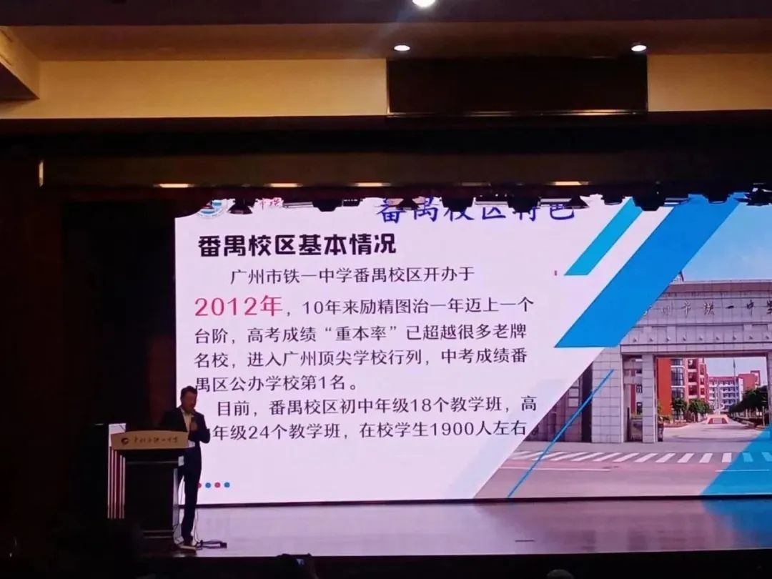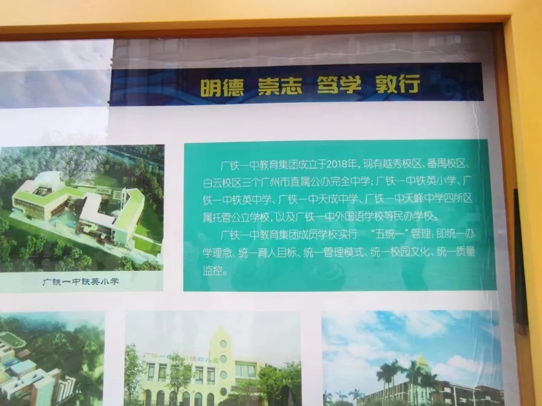 广州市铁一中学创建于1952年,是原铁道部重点中学、首批广东省一级学校、国家级示范性普通高中。铁一中学番禺校区于2012年建成并开始招生,与越秀校区一样,二者统一管理模式、统一办学理念、统一育人目标、统一资金核算,均为广州市直属公办完全中学。该校区目前有在校生近2000人。