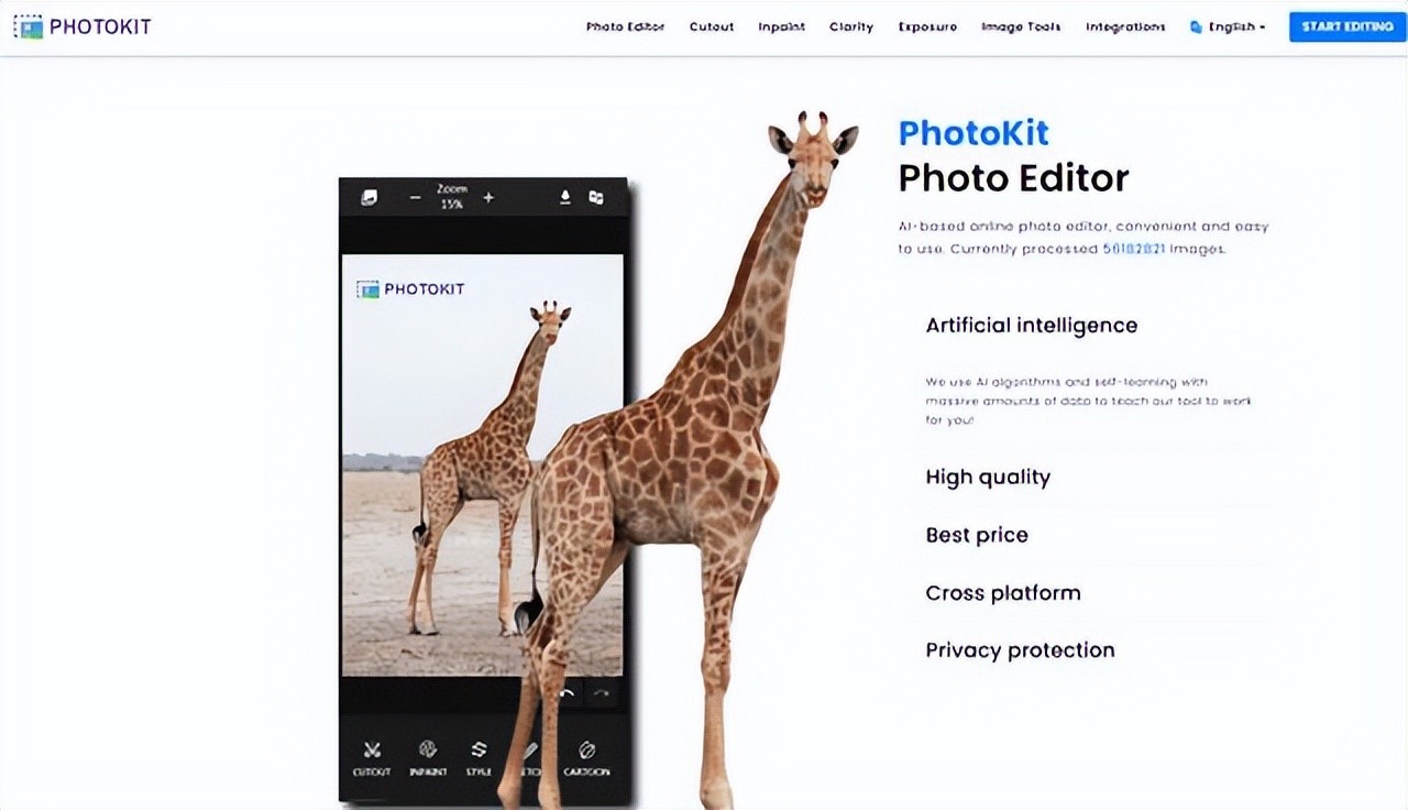 PhotoKit是一个功能全面的在线图像编辑器,除了常规的图片编辑功能外,它还提供了去水印功能。
