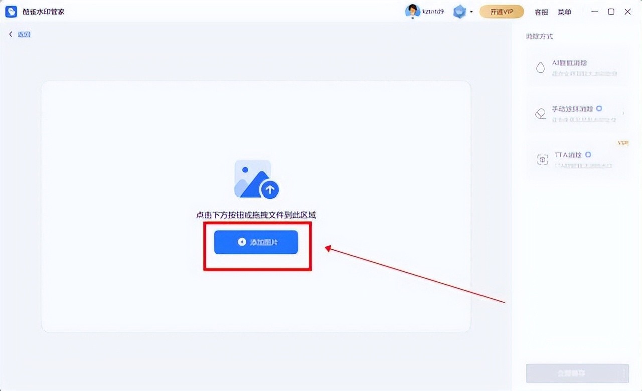 2、进入去水印界面,点击“添加图片”导入准备好的图片文件。