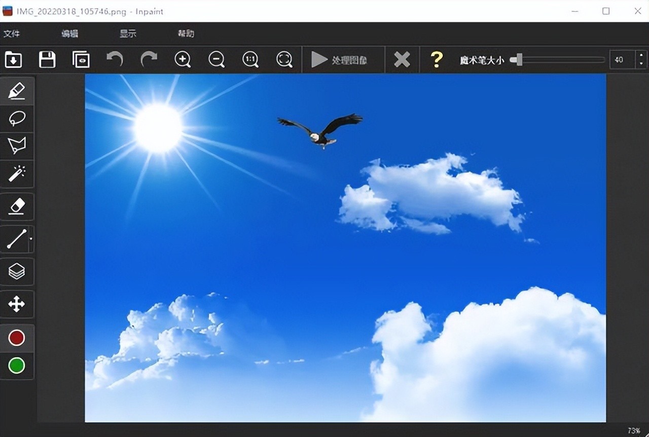 3、使用修复工具涂抹水印区域后,可以通过“放大镜”工具仔细检查图片的每一个细节,确保去水印效果完美。