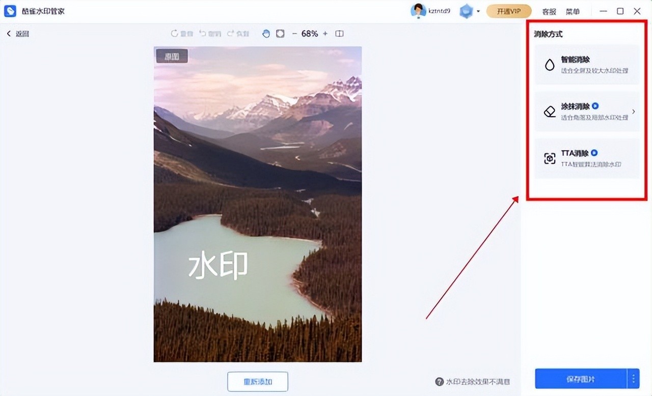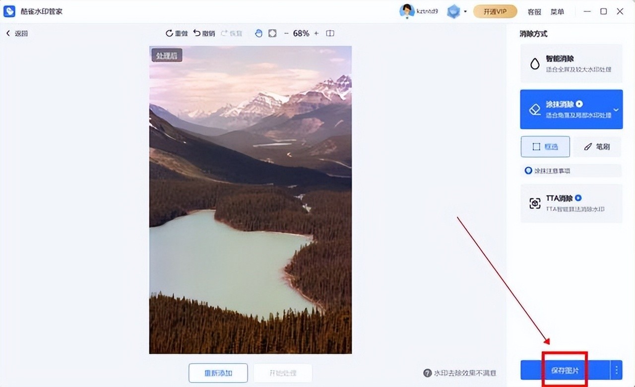 5、软件会自动处理图片,并将水印部分智能移除。去水印完成后,点击“立即保存”即可。