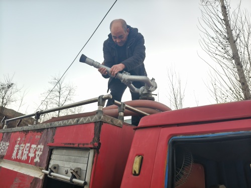 2022年冬天,深夜11点,正在休息的马建宝接到了群众的求救电话:村里一家工厂仓库堆放的杂物着火了!询问完具体情况和火灾位置后,马建宝连袜子都来不及穿,立马开上微型消防车,到村里的水井处给水罐灌满水。
