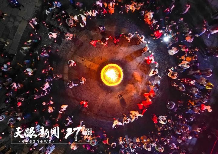 时值隆冬,贵州乌江寨国际旅游度假区推出主题为“围炉冬歌-热火艺术季”的冬季旅游活动,用热情的歌舞、独特的非遗表演、炫酷的无人机灯光音乐秀等,为游客们呈现了一场共享音乐与欢乐的冬季文旅盛宴。