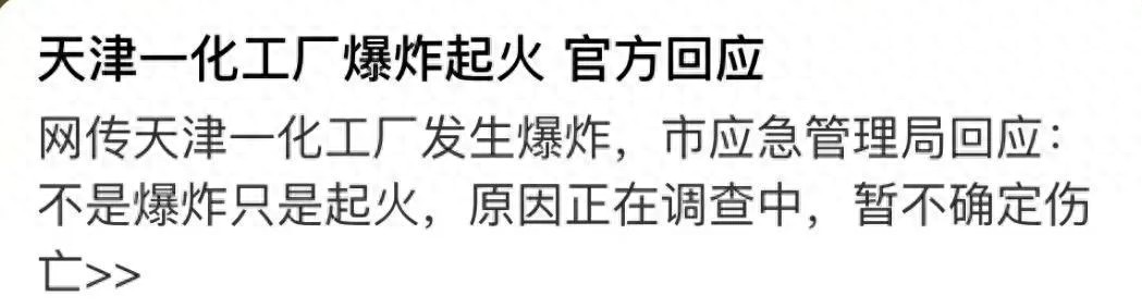 天津一化工厂发生爆炸起火?周边化工企业较多!官方最新回应!