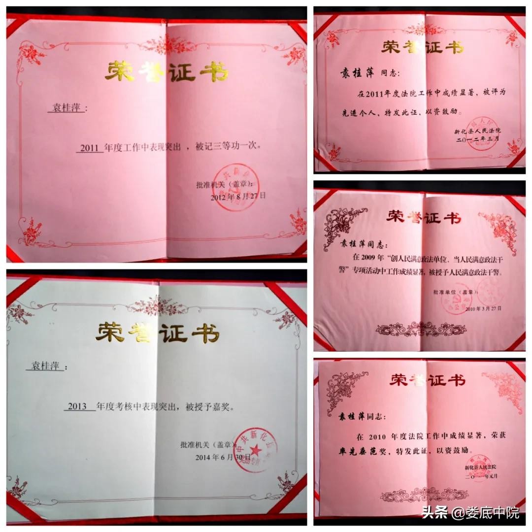在袁桂萍家中,一摞摞厚厚的荣誉证书,记录着她38年来的工作历程:先进个人、先进工作者、优秀共产党员、三八红旗手、优秀办案能手、人民满意政法干警、三等功、学习标兵……一系列荣誉称号,见证了袁桂萍从刚参加工作时青涩懵懂的年轻姑娘,到如今亲切干练的“法院大姐”的转变,见证了她三十多年如一日对法院工作的辛勤付出,也见证着她始终不变的为民初心。她常说,在办案中一定要做到“三心”:对待当事人要“热心”、在办案中要“细心”,在调判案子时要“公心”。热心细心公心,都不忘为民初心。也正因这颗火热的初心,让袁桂萍受到同事和群众的广泛称赞。