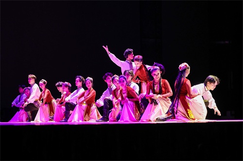 随后,《阿西里西》《不落的太阳》《花·花儿》《泉映腰肢》《心弦》《倒摇臂》等精心编排的舞蹈作品轮番上演。舞者们用灵动的肢体语言、饱满的情感投入和精湛的技艺,生动诠释中华民族多元的艺术魅力。特别引人注目的是,《渔光曲》以独特的板凳蒲扇舞,细腻刻画生活图景;《鹤影·草海谣》则深情演绎,将黔西北高原湿地的精灵——国家一级保护动物黑颈鹤的优雅形象与灵动神韵完美呈现于舞台,巧妙融合地域特色。