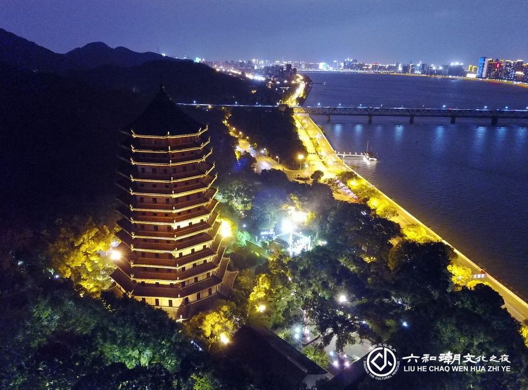 当晚,正值钱塘江农历大潮。钱江潮闻名天下,进入新时代,钱江潮被赋予了新的时代内涵,杭州正式提出实施“拥江发展”战略,钱江潮代表的敢为人先、潮流时尚的“弄潮儿”精神也逐渐成为浙江的主流文化。而钱塘江畔的千年古塔——六和塔因潮而生,是杭州西湖世界文化遗产重要组成部分,也是西湖三评十景“六和听涛”所在地。