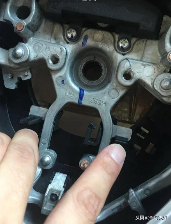 拧掉之后要看 原车标记,位置,装的时候也要按照这个标记去恢复,防止方向盘装偏。如图