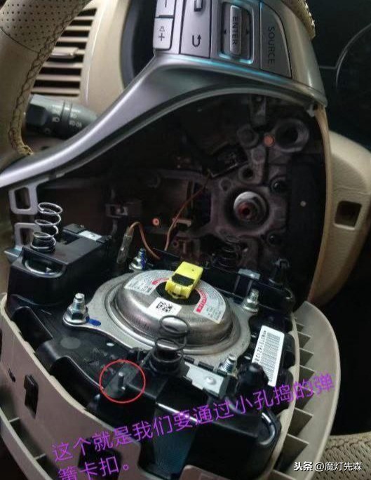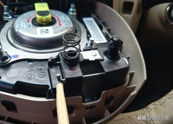 气囊出来,拔掉喇叭搭铁线,气囊插头,