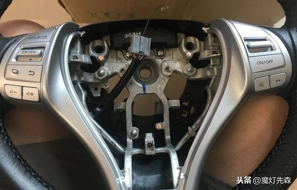 如上图:针对方向盘左侧只有控制仪表的按键,没有音响控制和定速按键的车型来升级讲解。