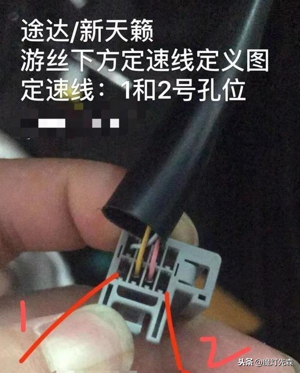 定速模块有两根定速线,直接插到如图所示1和2号两个孔里