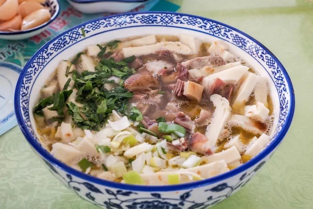 Biangbiang面是陕西八大怪之一,形似裤带,还有花边和波浪,外形看着就很惹眼,吃起来柔韧鲜香,喝一口面汤浓郁醉人,令人回味无穷。