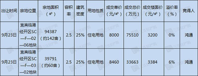 土地成交:9月23日,临港成交2宗涉宅用地,总共201.3亩。总地价近11亿,均由鸿通拿下!