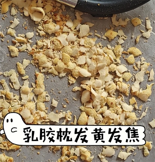 同时,乳胶枕的防虫能力也会受到影响,对于尘螨等微小生物的抵御能力减弱,可能会增加使用者过敏或不适的风险。更为严重的是,发黄乳胶枕在氧化过程中逐渐变得粗糙,甚至可能出现掉渣的现象,这不仅影响了使用者的睡眠体验,还可能对使用者的皮肤造成不必要的刺激。