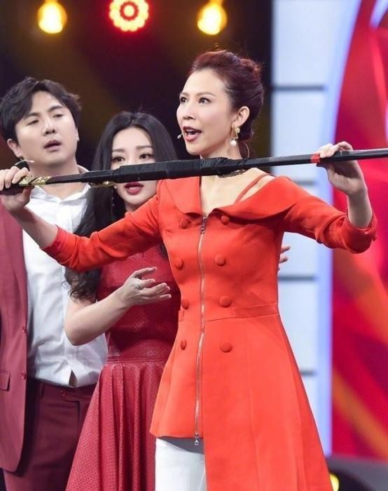 并且本身蔡少芬别就是属于身材纤瘦的女人,当它与A字裙搭配出来之后,还会有一种比较俏皮的效果。