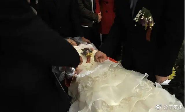 为了圆她生前结婚的梦想,追悼会上汪雨亲手帮她穿上婚纱,让她以美丽新娘的样子,走向了天国。