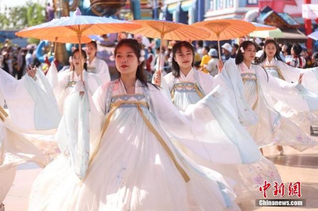 资料图:南京欢乐谷 " 春日漫裳次元纪 " 主题巡游,包括汉服大赏、国风音乐会以及 Cosplay 动漫展示等活动。 泱波 摄