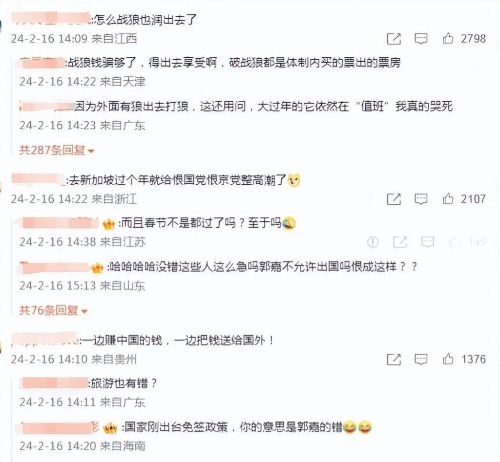但评论区的网友炸锅了,部分网友认为吴京过年不应该出国," 战狼 " 人设彻底崩塌了。