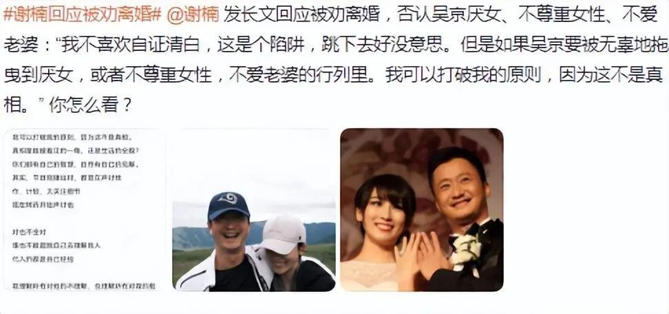 吴京也因此挂在热搜上好几天,最后谢楠发了篇长微博回应网友劝离的评论。