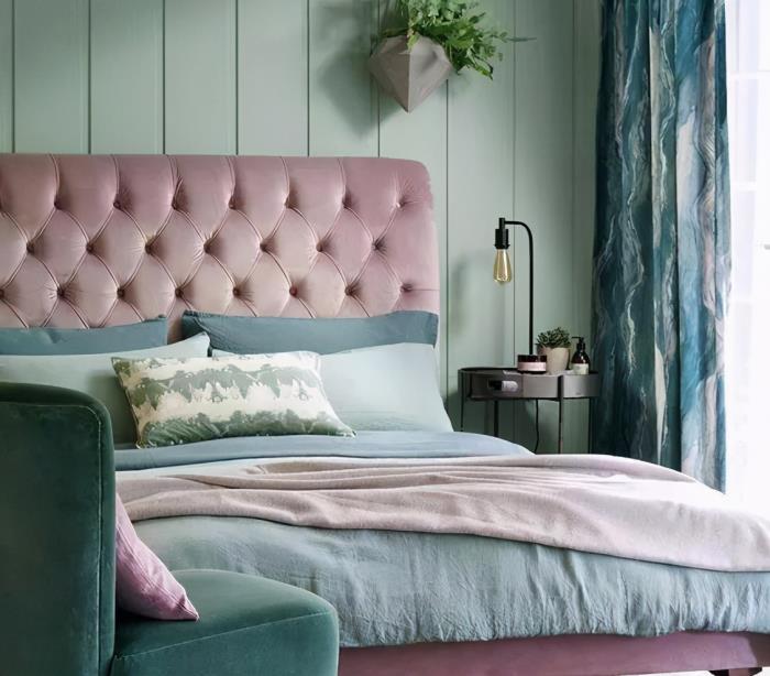 床头理想中的朝向:床头最理想的朝向是南北方向,不要对着门,最好还是靠近窗边,这样就能做到在黎明时分有阳光照射进来,有助于吸收大自然的能量,有益身心健康。