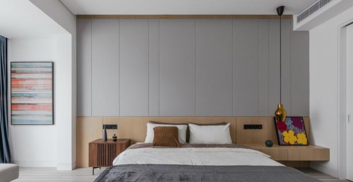 对于户型不好的房子来说,想要让卧室里的床头达到理想中的摆放是很难的,此时就可以根据实际情况来决定,但无论床朝哪边,床头最好靠在实墙上,凌空摆放会让人在心理上有不安全感。